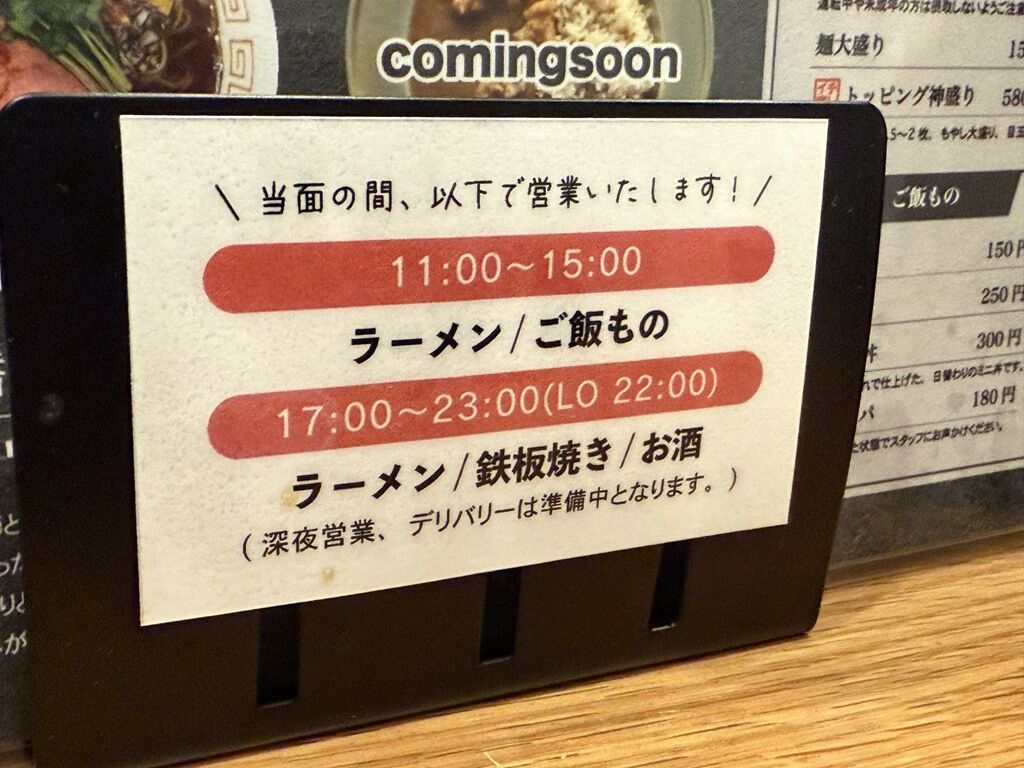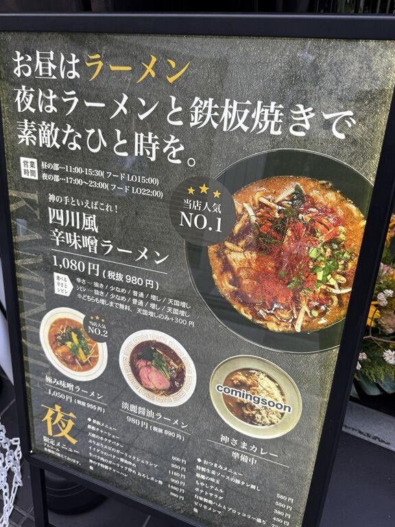 2025年4月6日大安・巳の日にオープン。新高円寺「麺昇 神の手」(2017年5月3日〜)が移転。昼はラーメン!夜はラーメンと鉄板焼きがウリのお店。