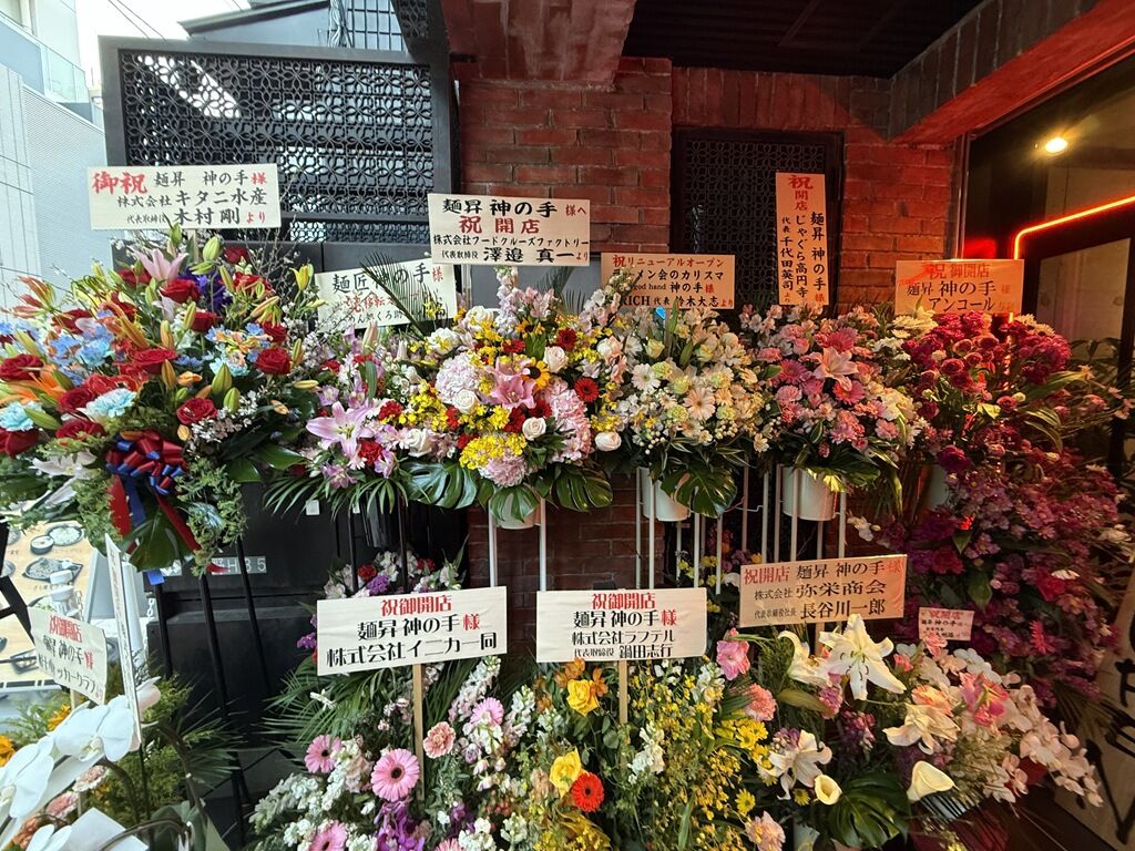 店頭にはたくさんの開店祝花。じゃぐら高円寺、らーめん処くろ助、他から。
