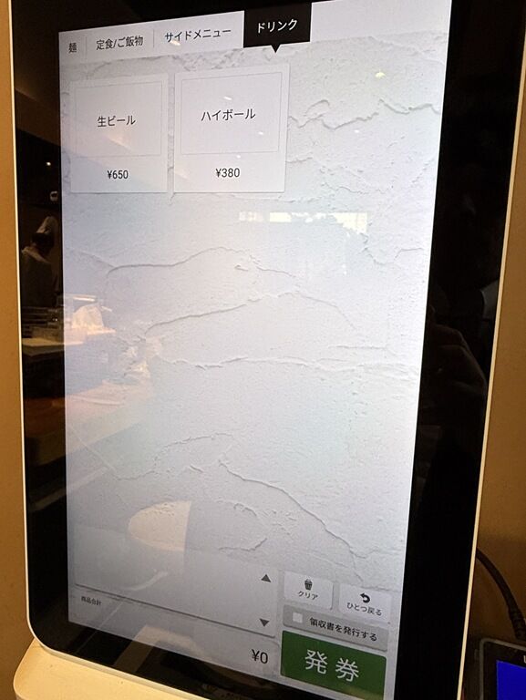 ハイボールは濃いめオーダー可能。食券を渡すと、オープン記念で味玉か唐揚げサービスを告げられます。