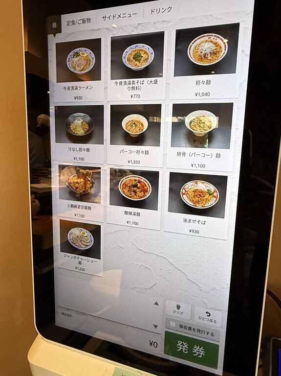 牛骨清湯ラーメン930円