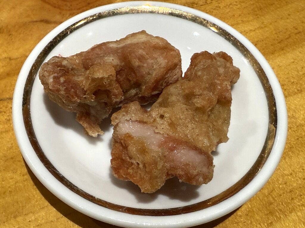 まずはオープン記念サービスの唐揚げが到着。どんどん揚げてるので揚げたて熱々さくさくうま~。
