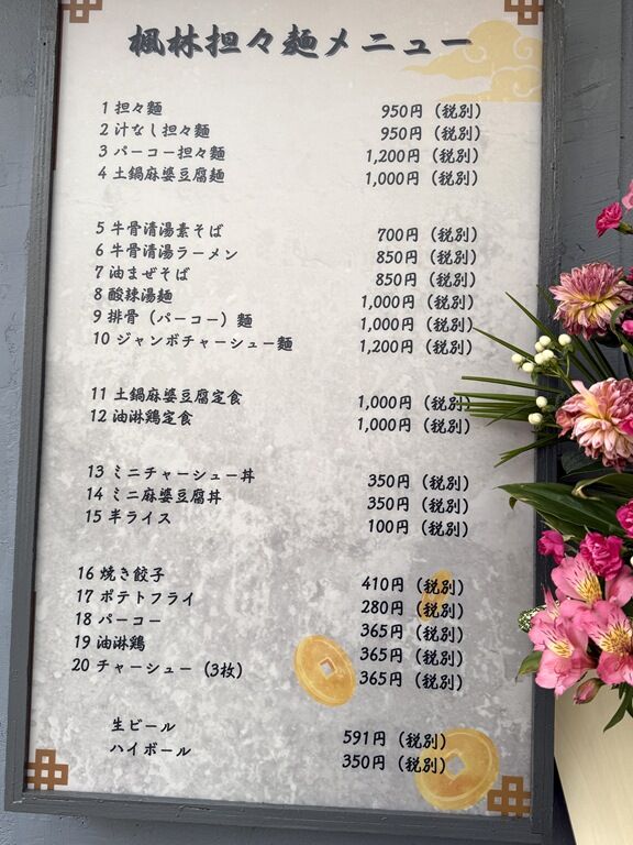 2025年4月7日オープン。タンタンメン麻婆豆腐推しのお店。「土鍋麻婆豆腐麺」があると知って、神保町「源来酒家」の土鍋入り「麻婆麺」に感動したのを思い出し、俄然興味が湧いてきました。