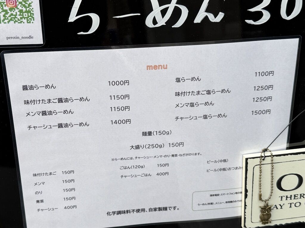 らーめんは麺量150g、大盛250g+150円。