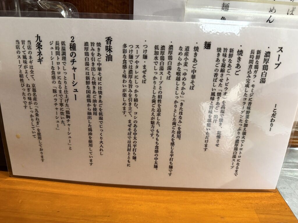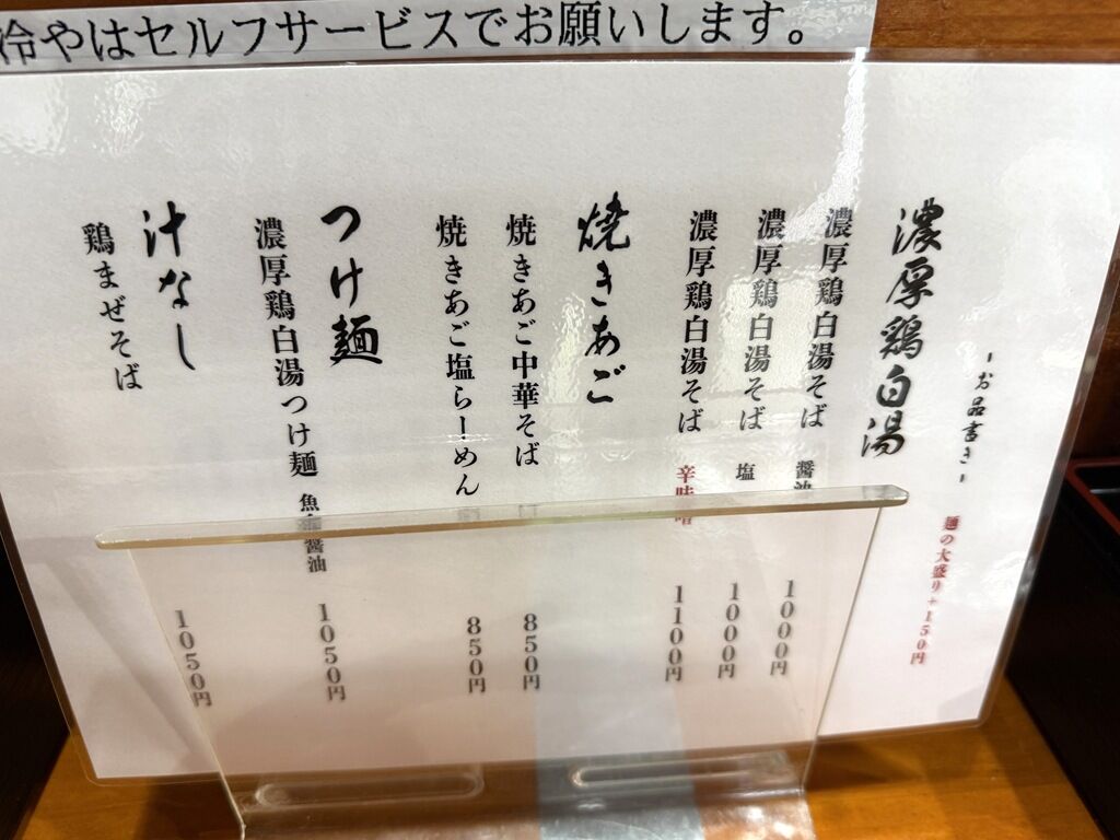 移転前は、ハマグリらぁ麺、真鯛らぁ麺も人気だったそうですが、移転後は厨房狭くワンオペということもあり、上記メニューでスタート。