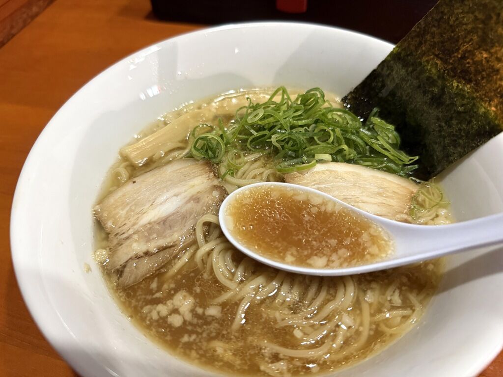 先頭メニューは鶏白湯ですが、清湯系が気になってこちらを発注。白い反高台丼で着丼。