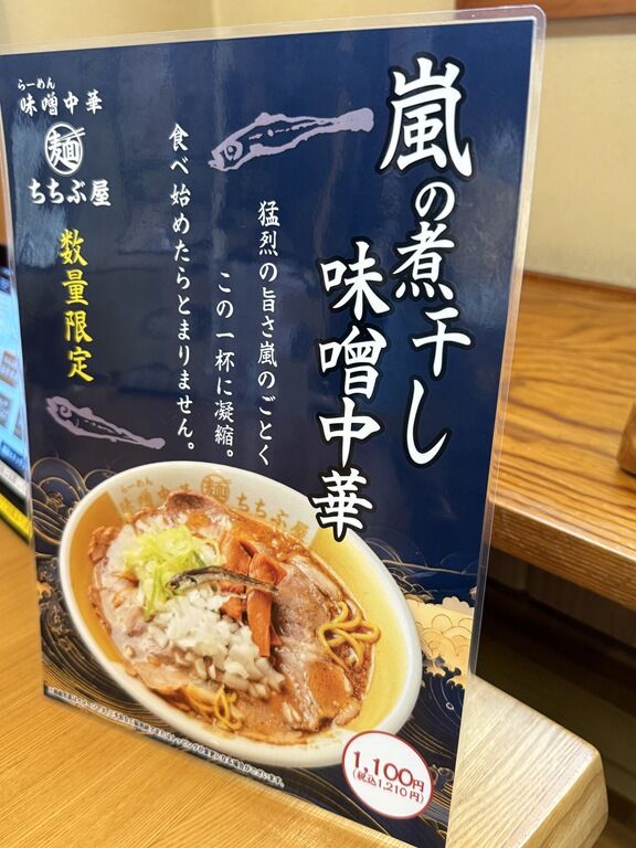 5/16から、新作「嵐の煮干し味噌中華」1210円、数量限定で登場。