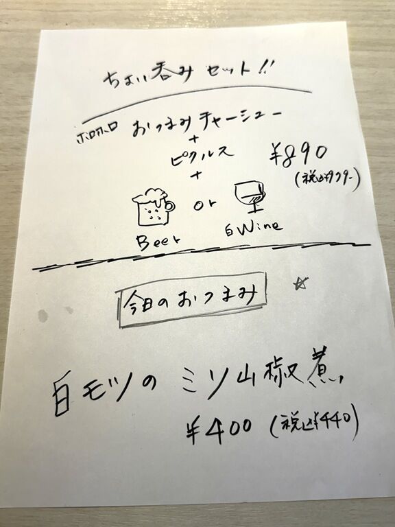 店内は厨房前に真っ直ぐなカウンター6席、2人卓x4。17:30頃到着で先客1後客なし。厨房に店主さん、レジに接客担当の女性の2名体制。紙エプロンは申告制。