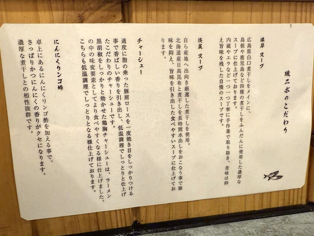 2025年6月7日オープン。「煮干し攻めすぎちゃいました!」 をコンセプトに誰でも美味しく食べれる濃厚煮干しラーメンを提供するお店。
