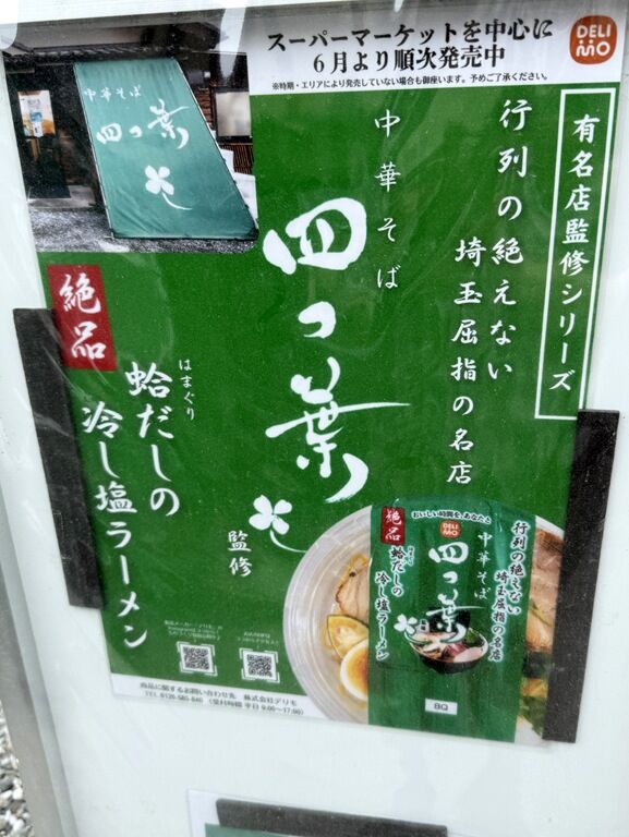 「中華そば 四つ葉監修 蛤だしの冷し塩ラーメン」今年も発売されるようです。