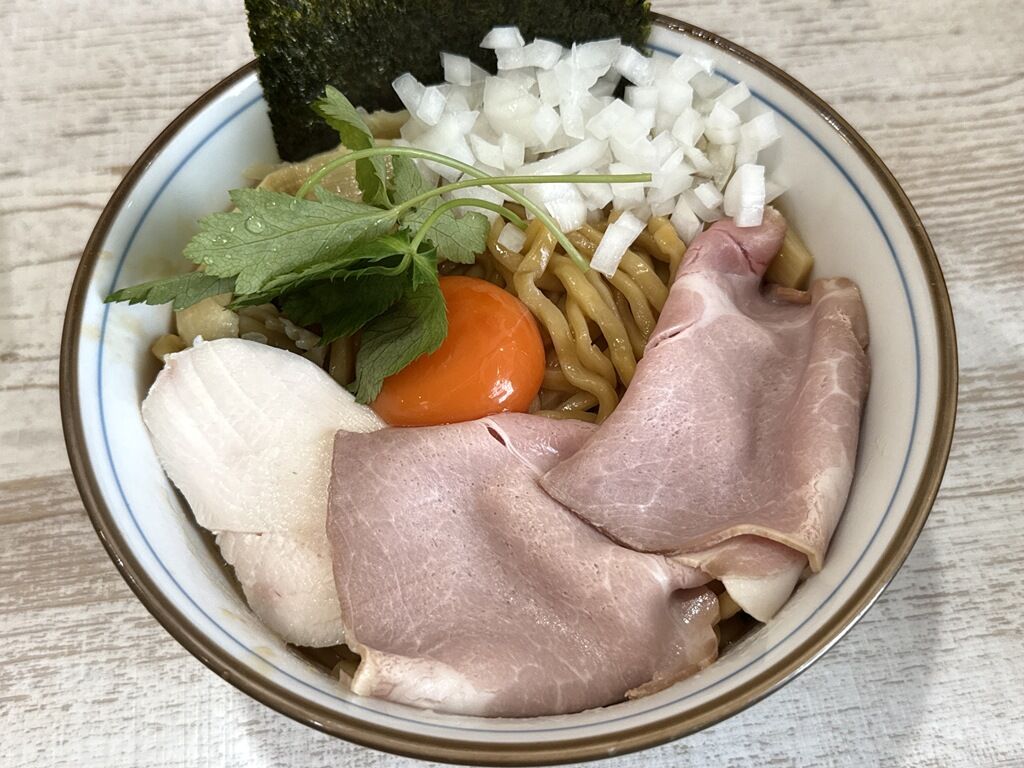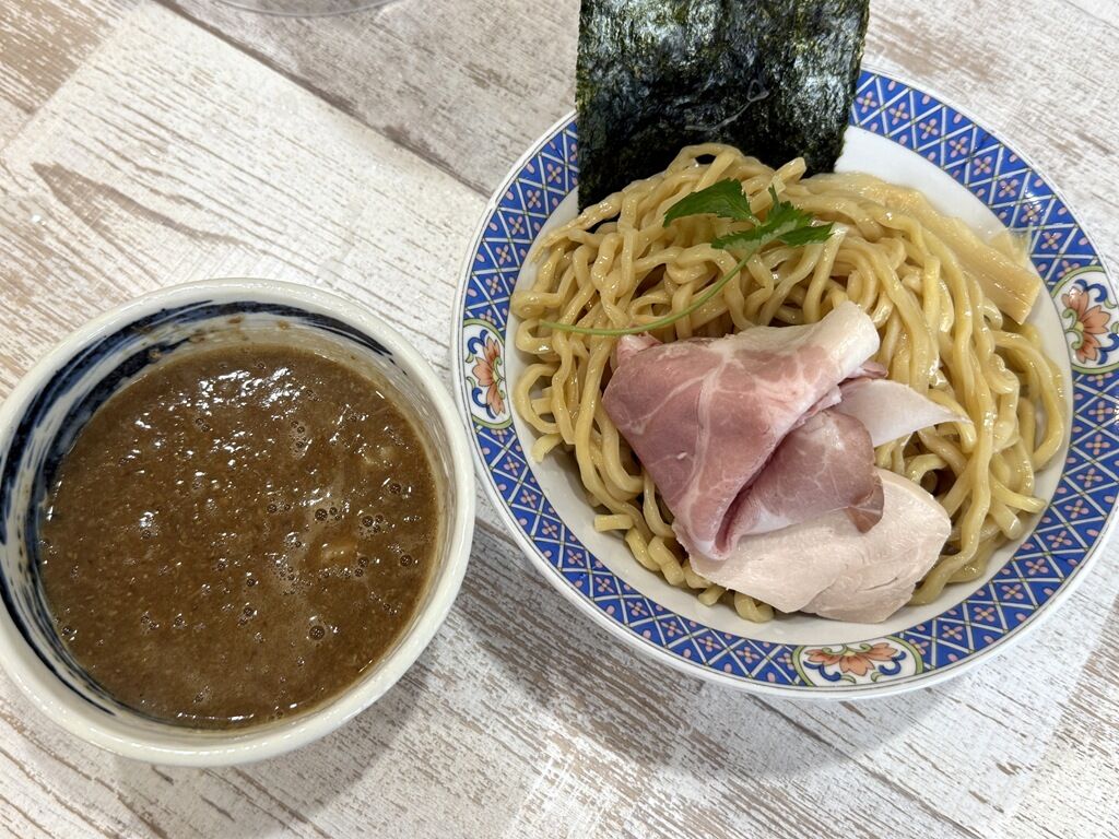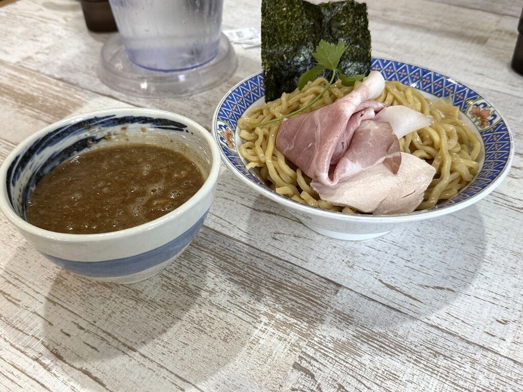 地元川島町「金笛醤油」の再仕込生醤油を贅沢に使用した濃厚なつけ汁、自家製の平打ち太縮れ麺が特徴のつけ麺。