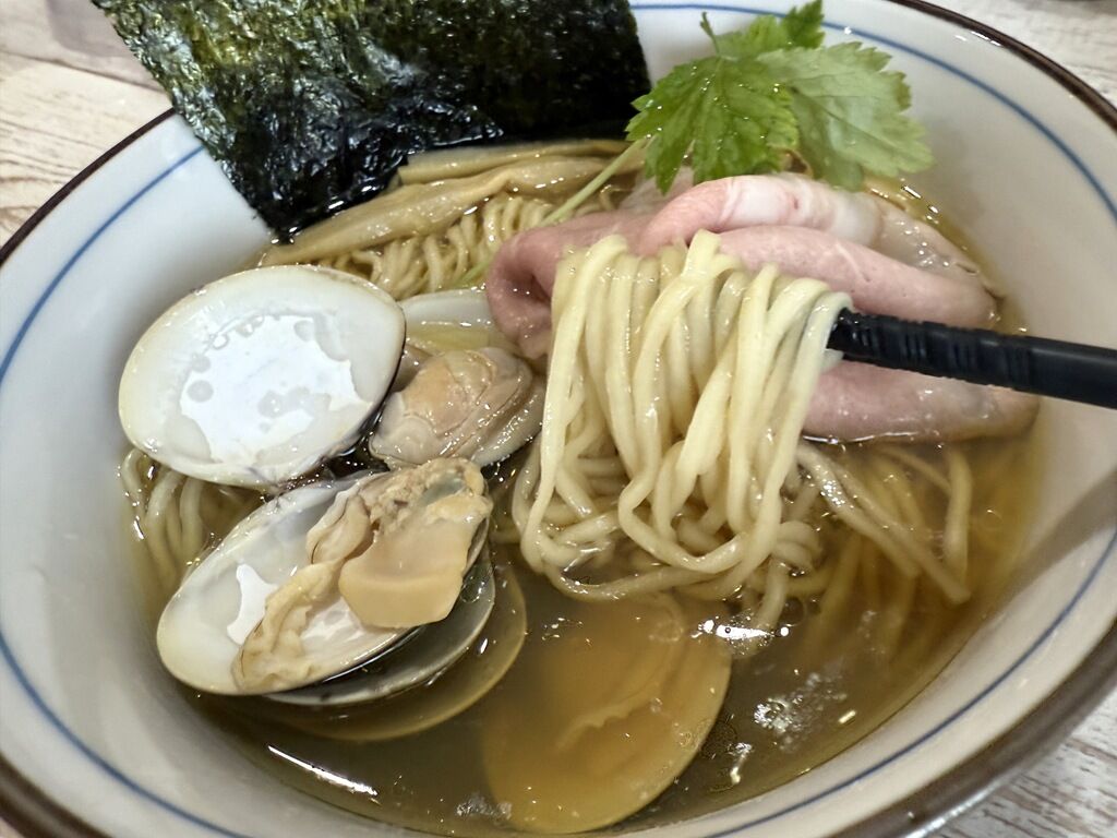 スープはさらさらの清湯淡口醤油味。蛤の出汁がしっかり出ていて、胃の腑に沁み渡る味わい。ほのぼのとしみじみと実に美味しい!