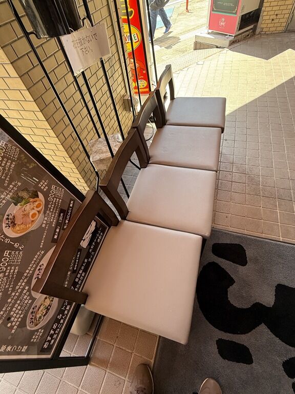 ちょっと早めの到着で一番海苔~w 店頭待ち椅子は4脚。