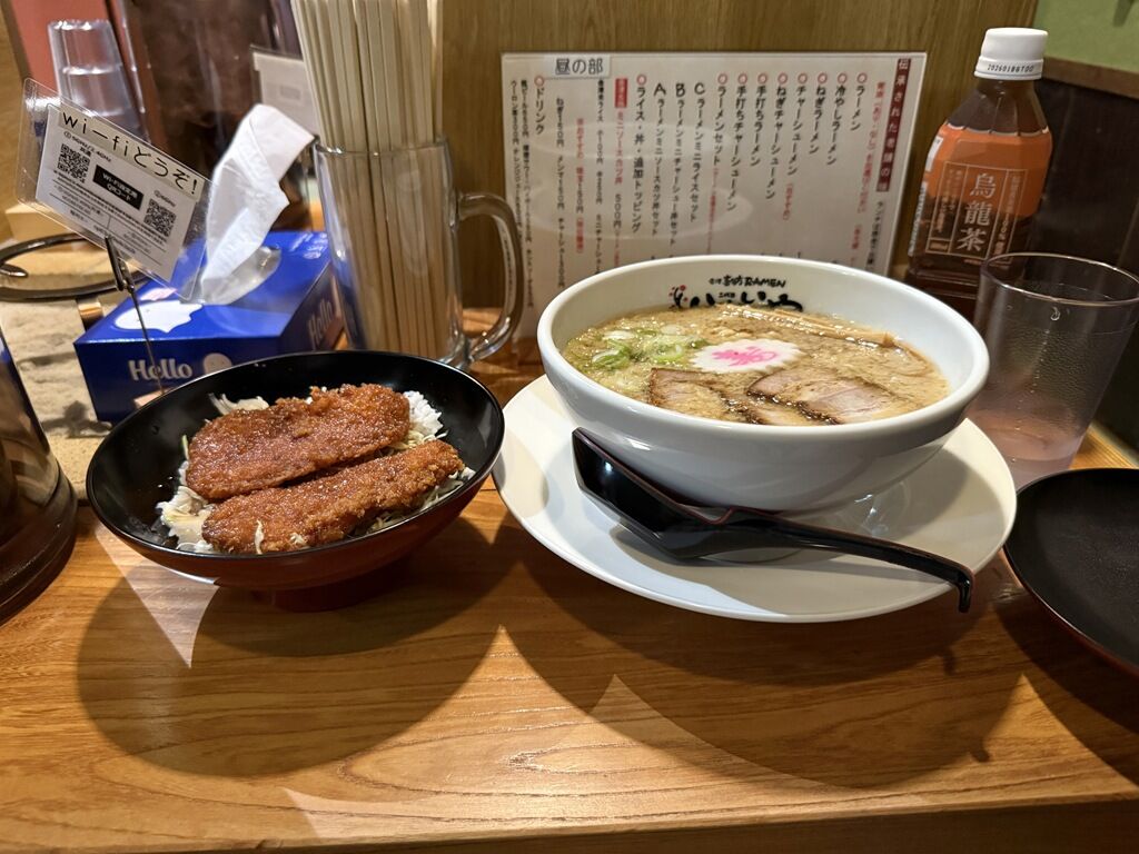 そして待つことしばし、「ラーメン・ミニソースカツ丼セット」完成で~す♪