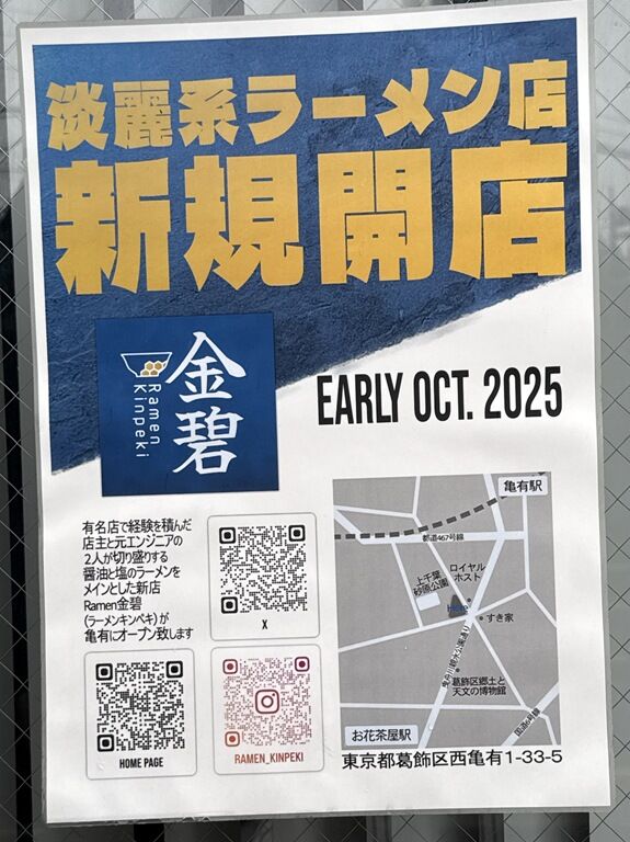 2025年10月11日、亀有の新店「Ramen金碧(きんぺき)」へ。