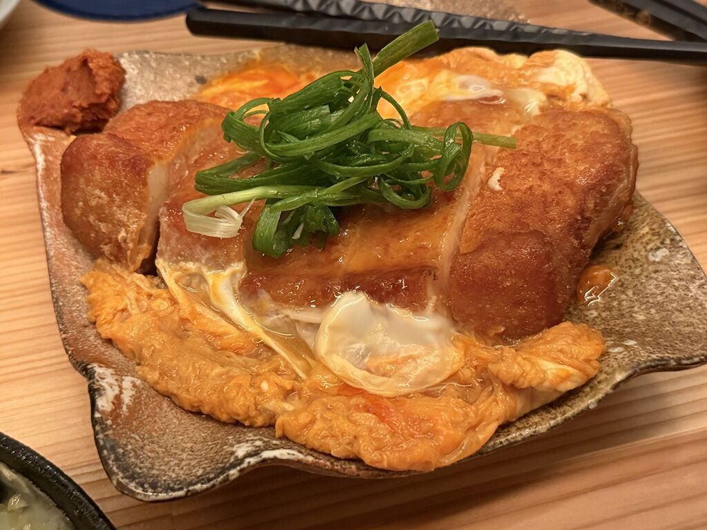 「極厚 カツ丼のアタマ」、蓋が閉まらない超厚切りカツ丼、例えば門仲「とんかつ丸七」のカツ丼のカツを、玉子でとじた的な。一切れもジャンボサイズ。