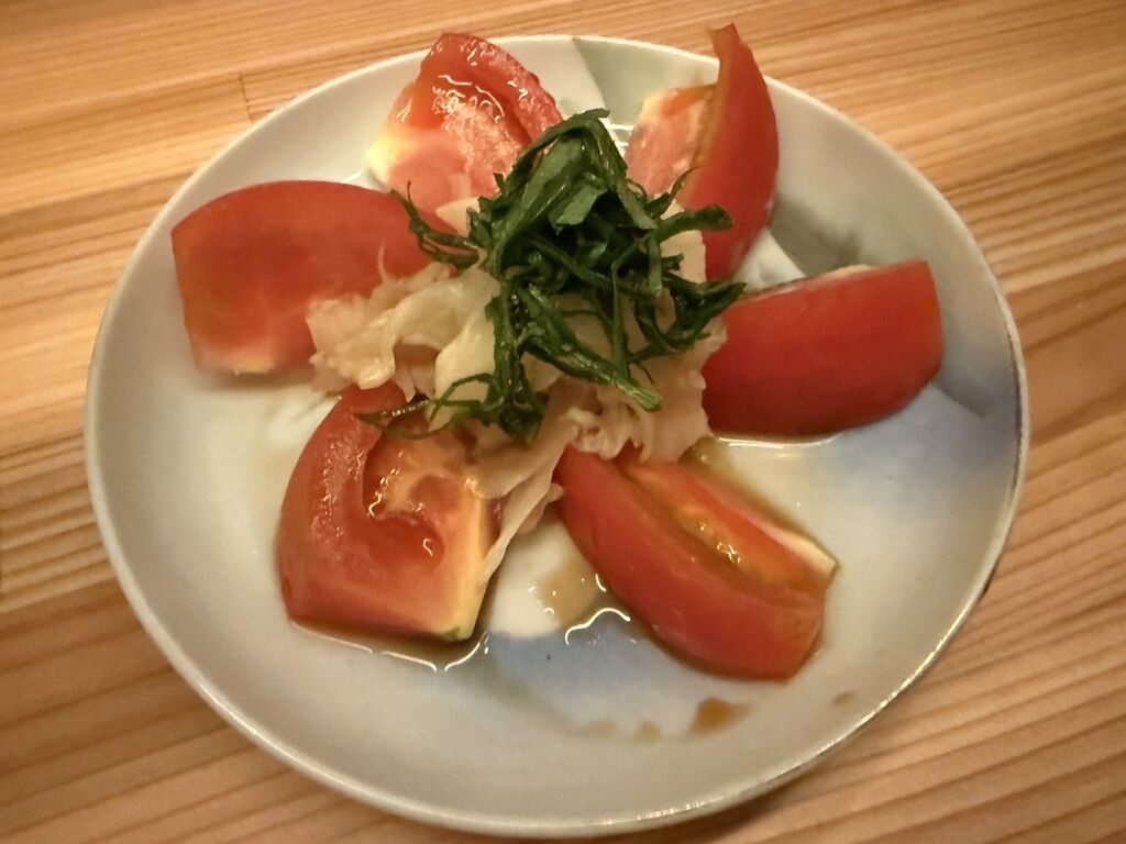 「しそガリトマト」、紫蘇と生姜とトマトのサラダ。