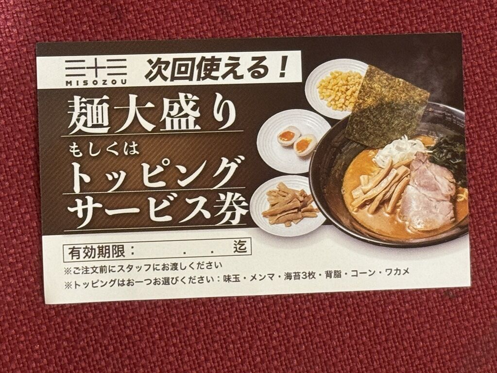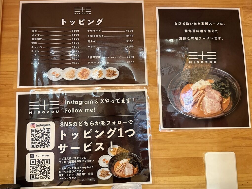 2025年10月18日、府中の新店「北海道味噌ラーメン 三十三 MISOZOU」へ。