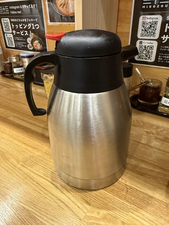店内に何度か「割りスープあります」と声がかかり、それならばと発注。ポットで提供されました。