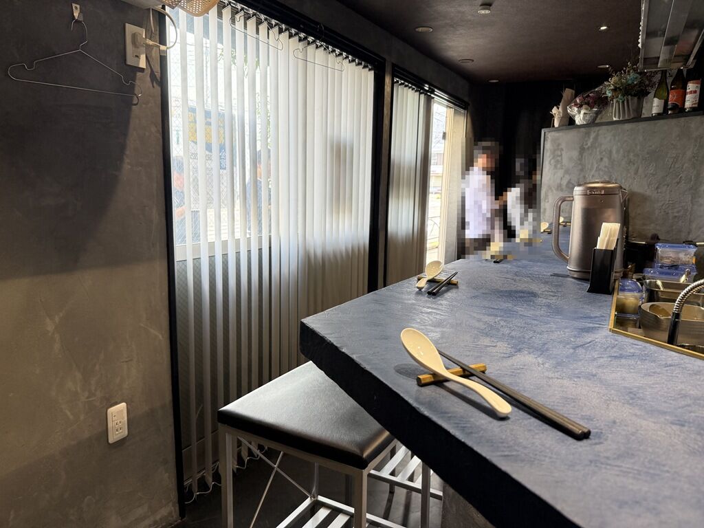 BGMはポップス。箸は洗い箸でサスティナブルに配慮。卓上調味料はペッパーミリ入り胡椒。