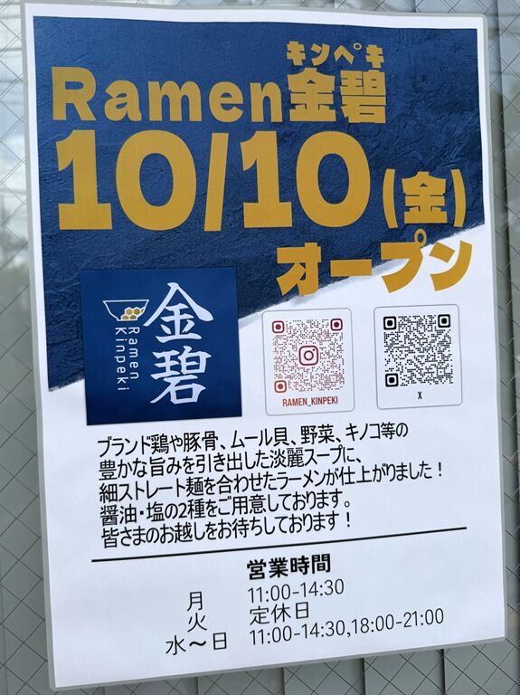 2025年10月18日、亀有の新店「Ramen金碧」へ。