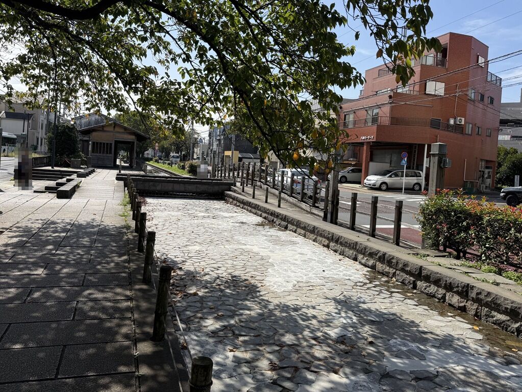 店の場所は亀有駅南口約1.3km(徒歩約18分)、お花茶屋駅約1.2km(徒歩約17分)。すぐそばの曳舟親水公園は、のどかで散策には気持ちの良い小路です。