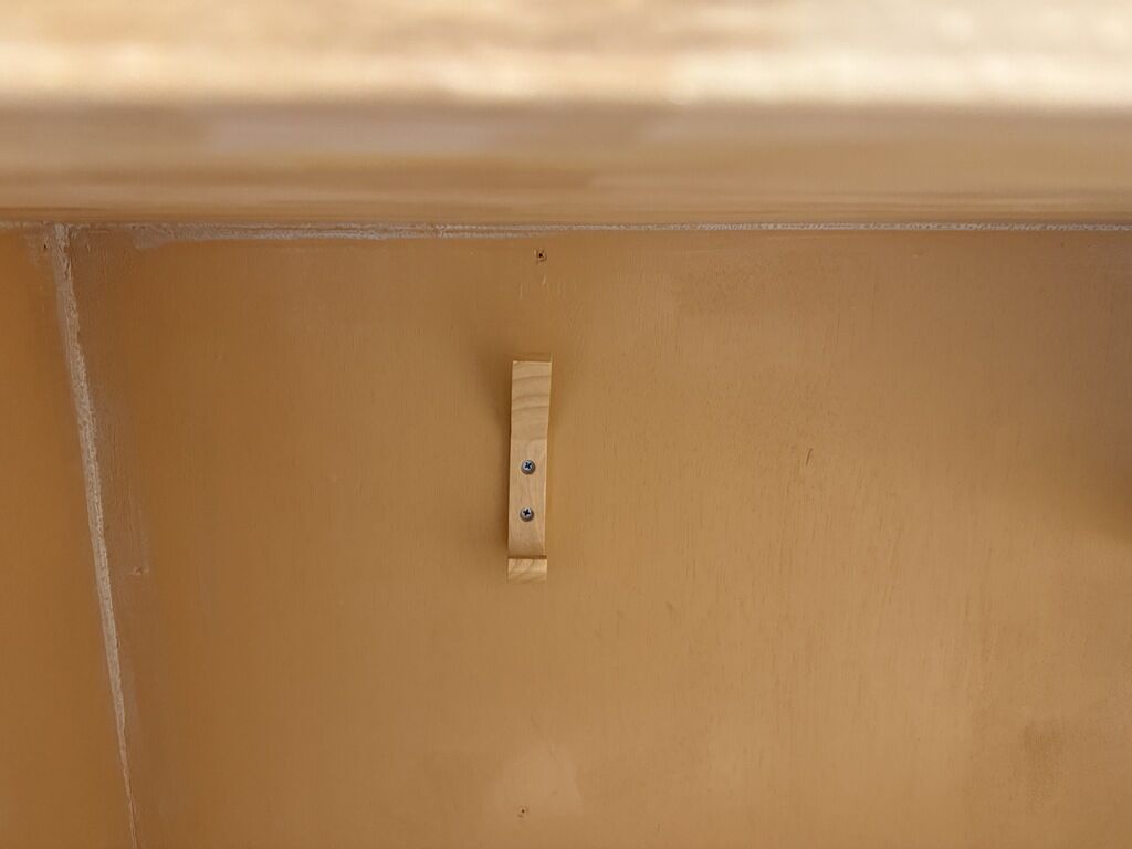 カウンター下に荷物フックがありますが、フックの取り付け位置が低く、バックパックをフックにかけても床に着いちゃいます。