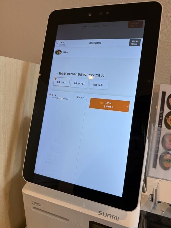 入店するとまずタッチパネル式券売機で食券購入です。なお決済方式は10/27まで現金のみ。キャッシュレスは10/28以降利用可能。