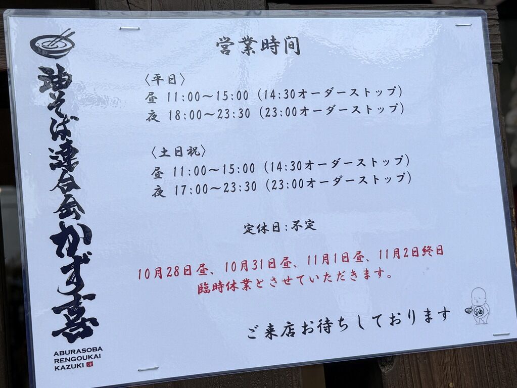 2025年10月25日、戸田の新店「油そば連合会 かず喜」へ。