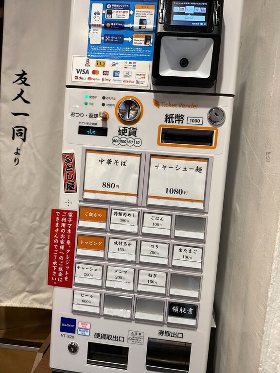 券売機は使いやすいボタン式ですが、キャッシュレスも対応のハイブリッドタイプ。
