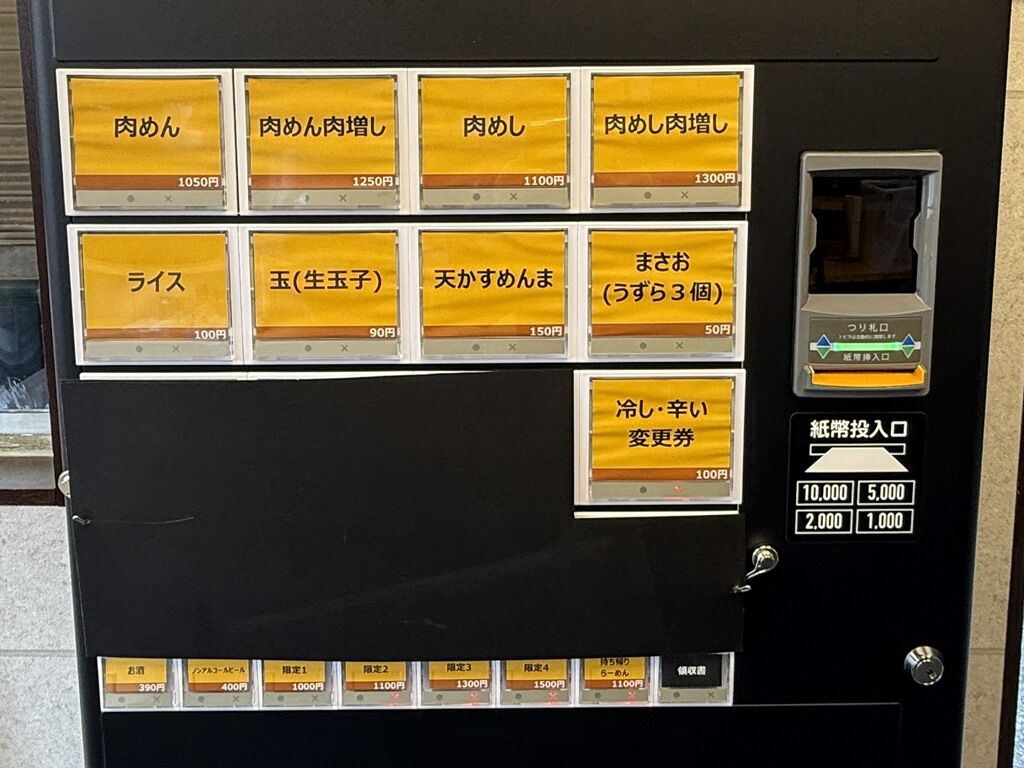 入店するとまず新券・高額紙幣対応券売機で食券購入です。