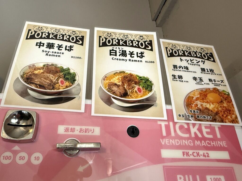 12:50頃到着で店内満席中待ち1。入店するとまず券売機で食券購入です。