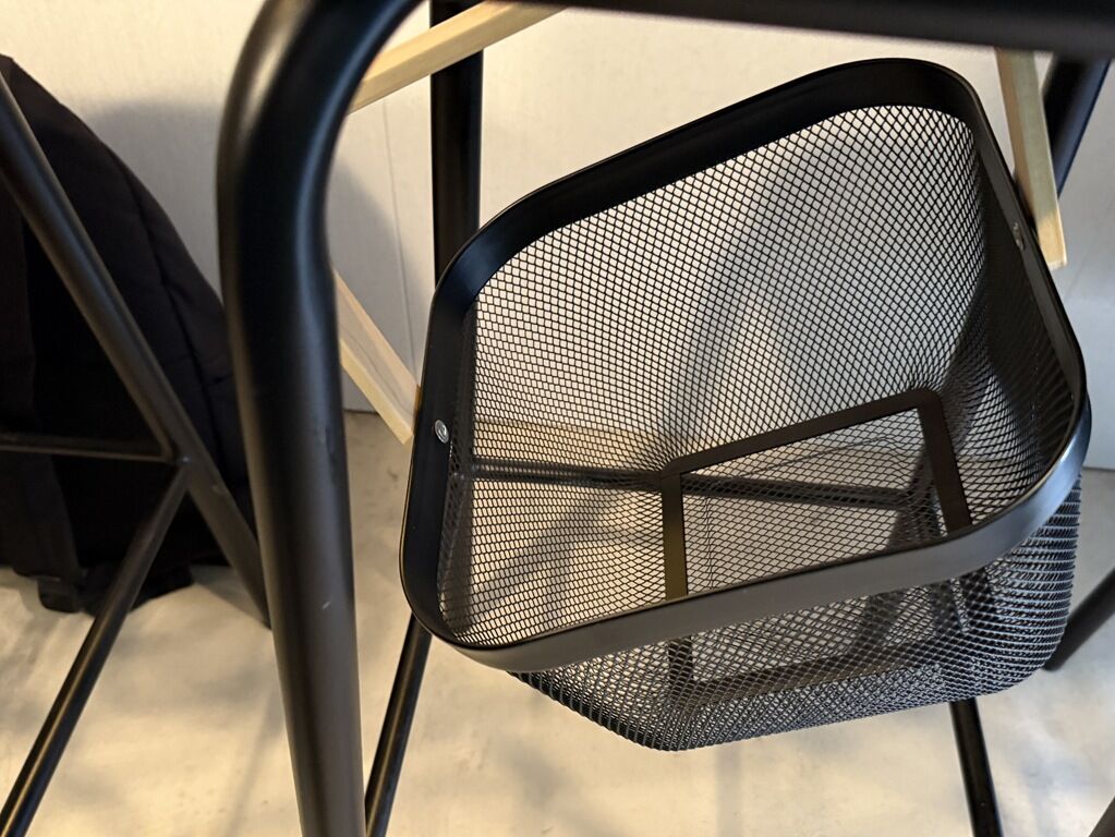 椅子下に吊り下げ式のかごがあり小さい荷物なら入ります。また通路の壁際に荷物フックがあり、大きめのカバンなどは皆さんそちらを利用。
