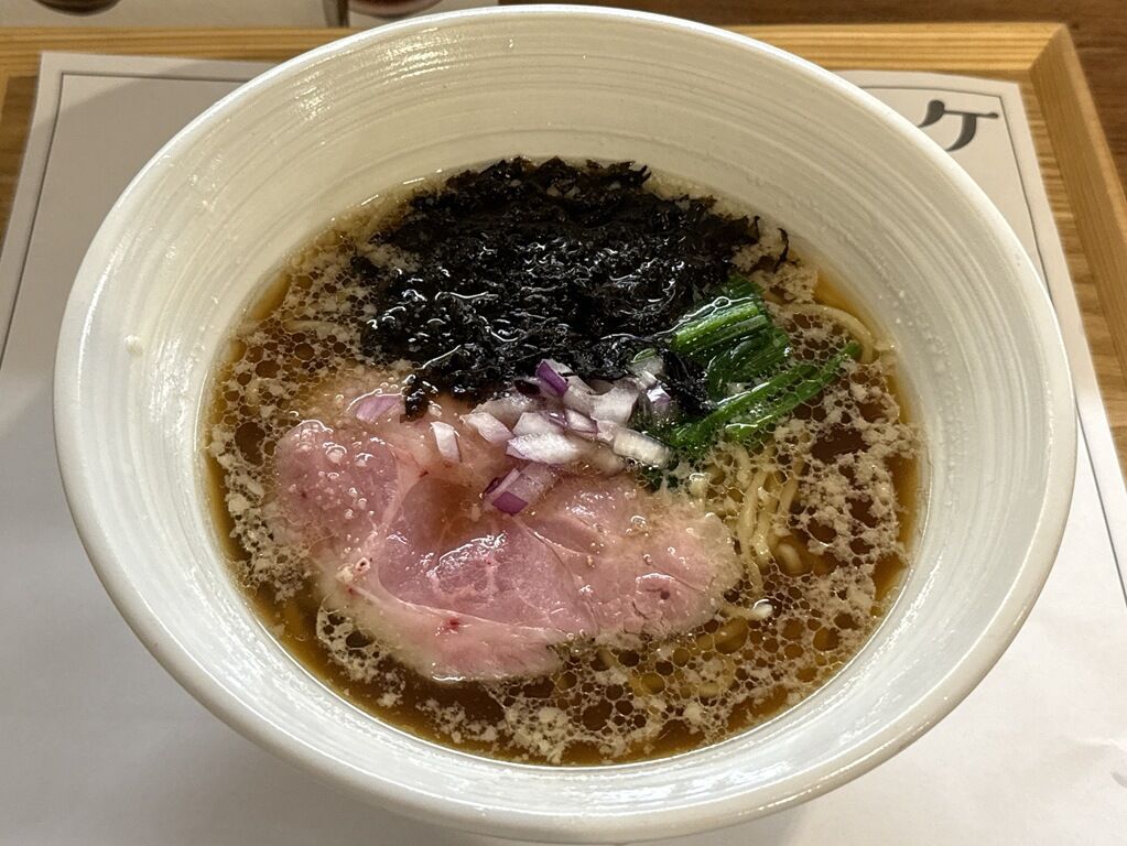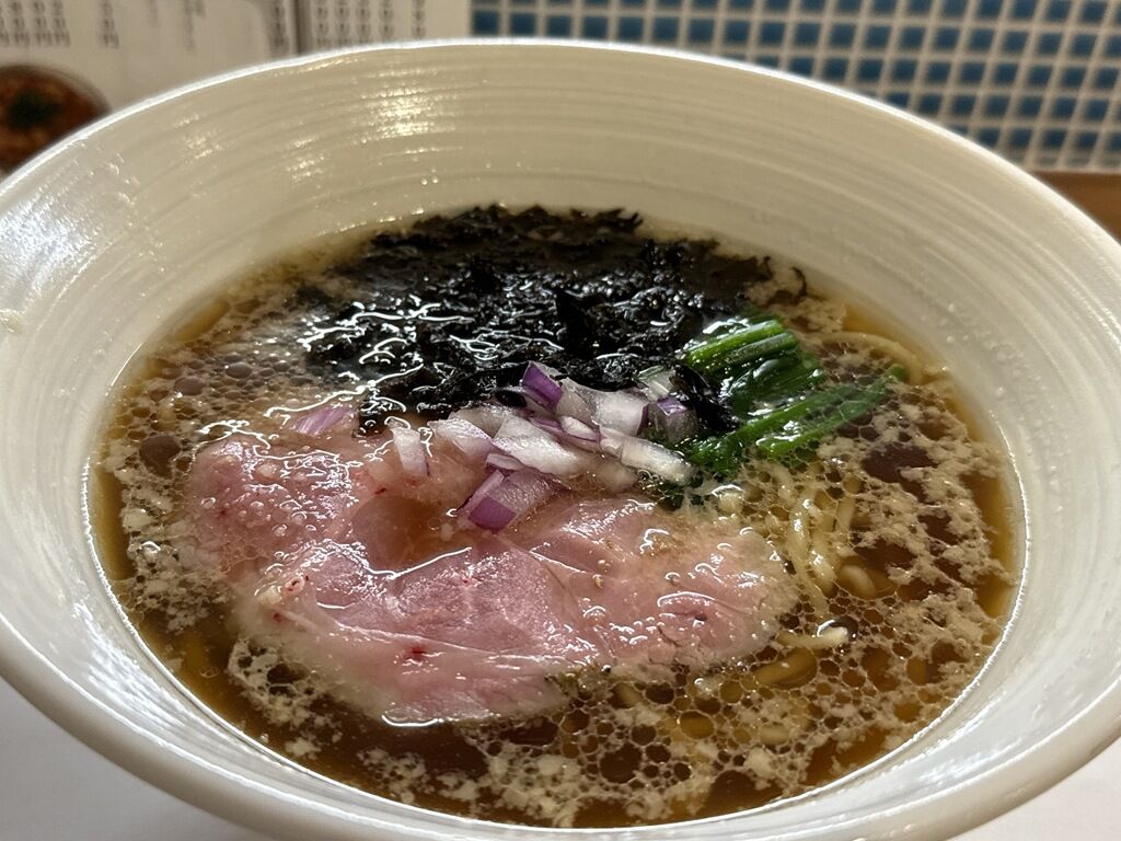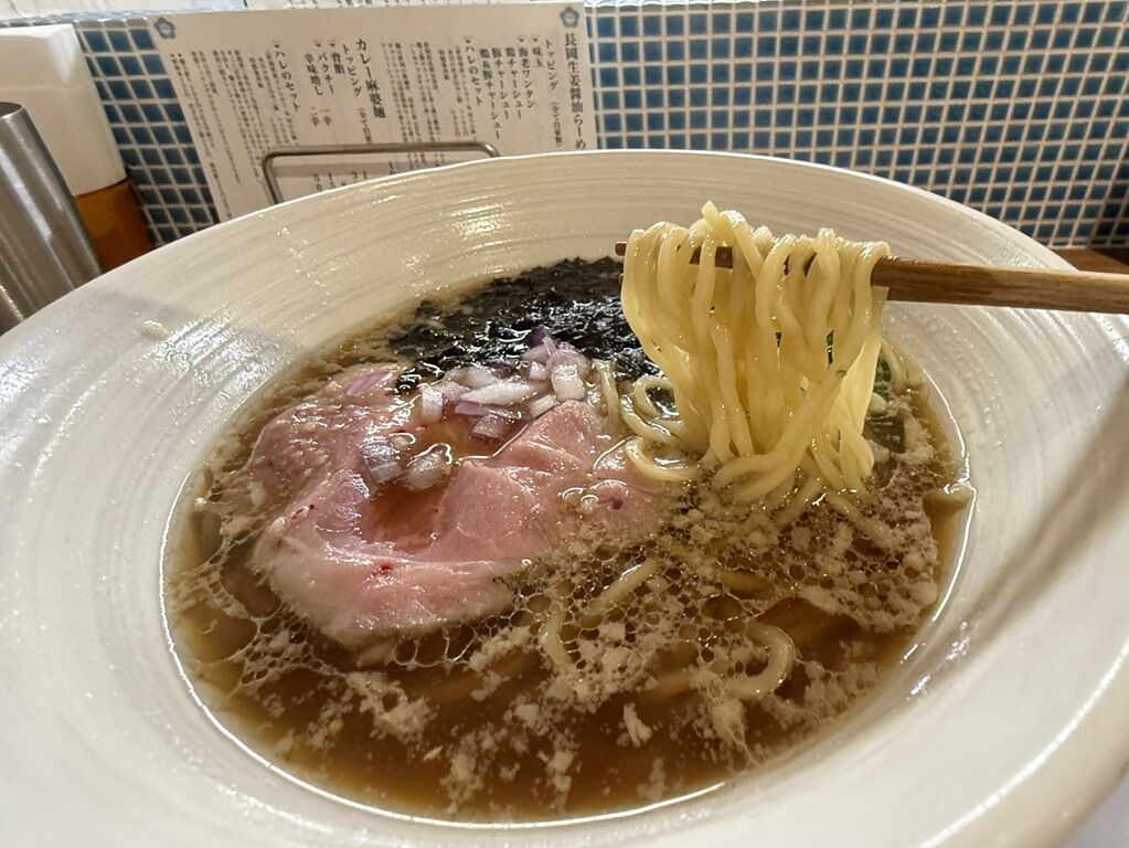 長岡生姜醤油ラーメンにバラ海苔、玉ねぎ、背脂は異色というか前代未聞。ですがこちらでは、長岡生姜醤油ラーメンに燕背脂煮干しラーメンの要素をプラス。伝統的な新潟ラーメンをベースに、長岡生姜醤油+燕背脂のエッセンスを加えて、両麺のいいとこ取り、新しい新潟ラーメンを創作。
