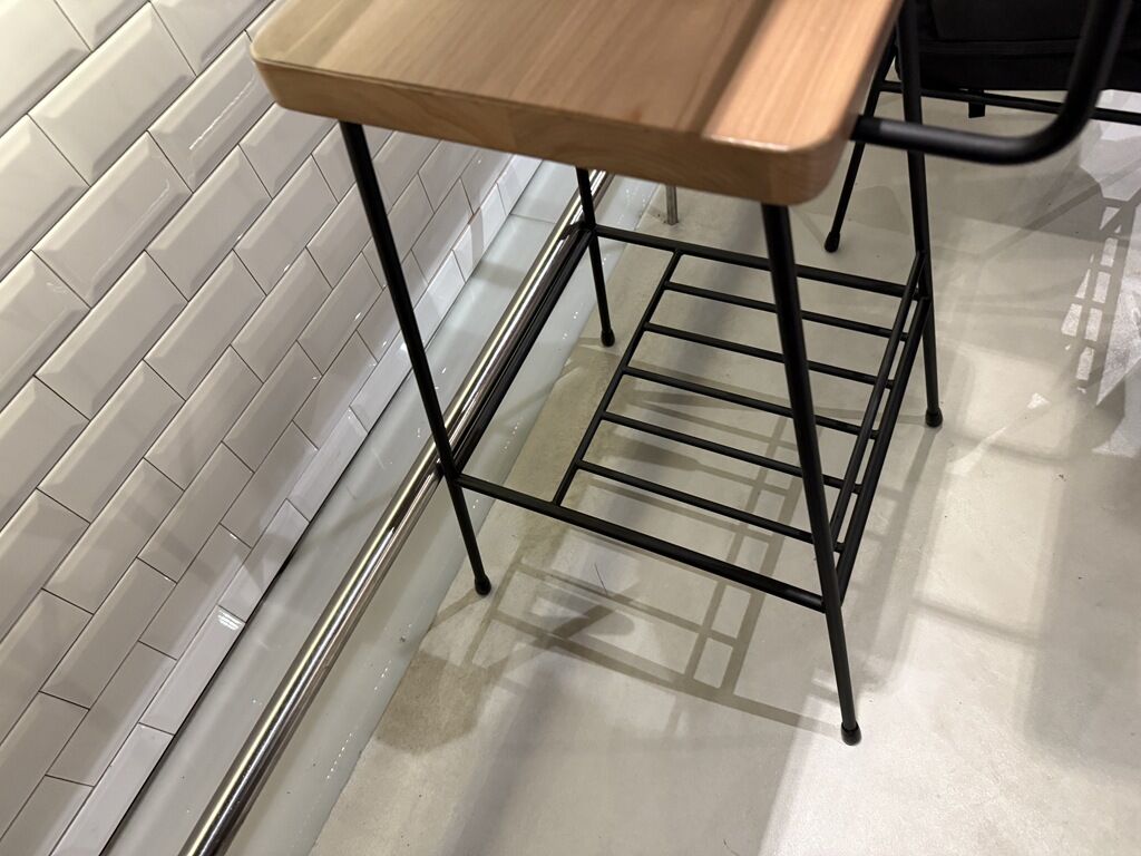 お冷は出していただきました。カウンターの椅子下に荷物が置けるようになっています。紙エプロンは申告制。