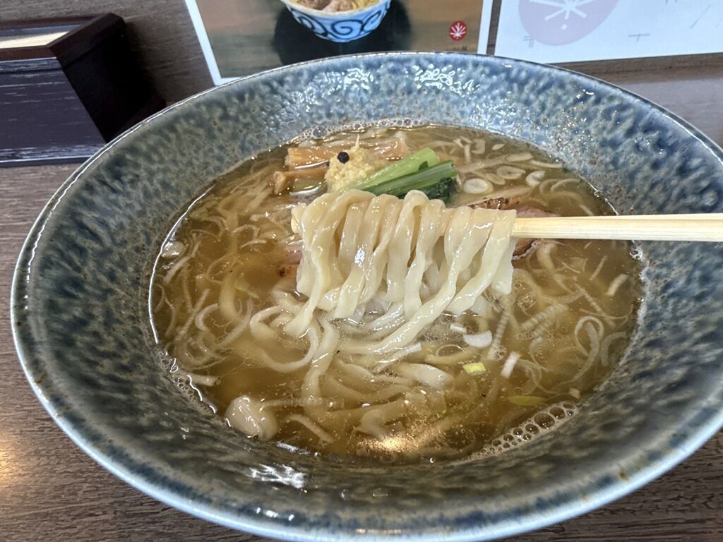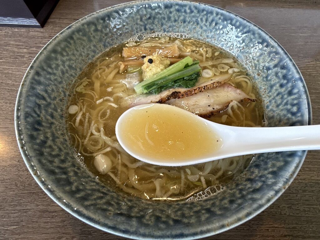 スープはさらさらの清湯塩味。食材は4年近く前と変わらなければ、比内地鶏、丹波黒どり、黒さつま鶏、いりこ、あご、豚、はまぐり、真昆布、牡蠣、椎茸、地鶏オイル、鴨豚の燻製オイル、粟国の塩圧倒的な出汁の分厚さに圧倒されます。以前LABOで食べたときも感動しましたが、さらにズシリとスケールアップした印象。子に一杯で専門店を出して繁盛店になりそうなレベルですごく美味しい!