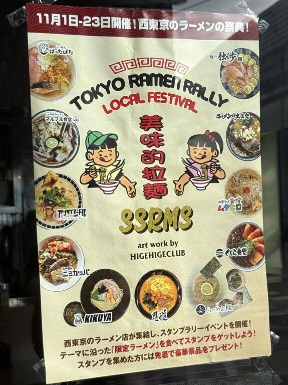 9:30到着。店頭には西東京ラーメン店スタンプラリーのポスター。知り合い何人かは既にコンプしてました。