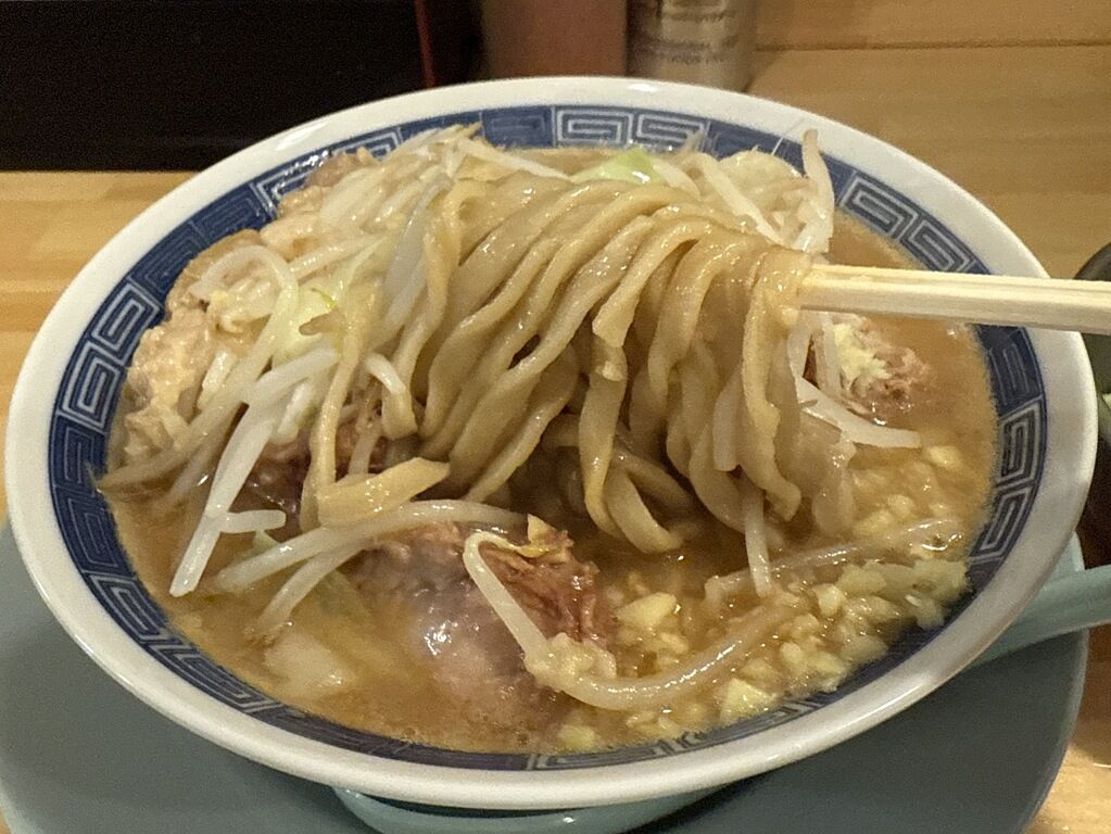 麺はオーション100%の自家製麺。しっかりと茹できってあって、ワシワシまではいかない強めの適度なコシと迫力&ボリュームが楽しめます。