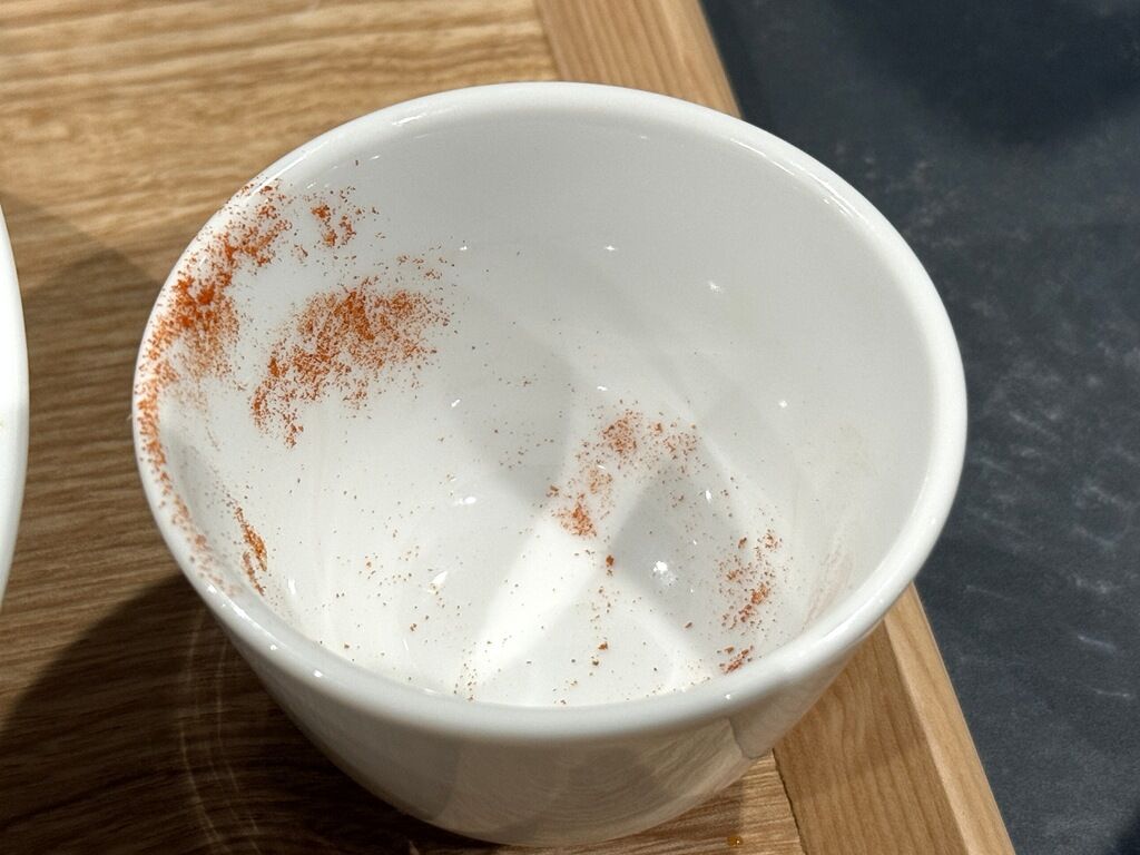 器の底にはオリジナルラー油と山椒が効いた和風出汁のスープ(ソース)。