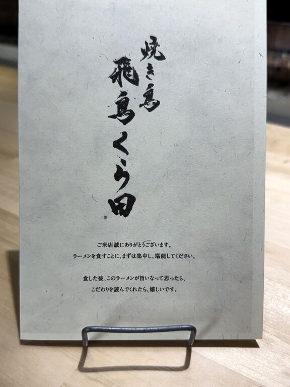 2025年11月22日。神田の新店「麺や飛鳥くら田(ひちょう くらた)」へ。