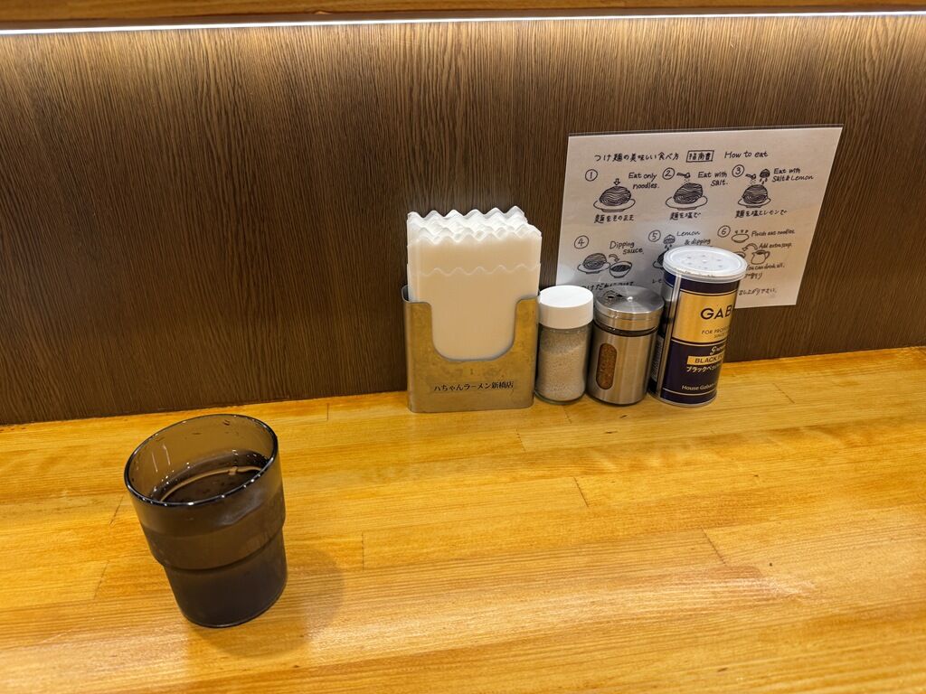 新橋店は本店とは味を変えて、生姜醤油・塩のラーメンと生姜醤油・塩の昆布水つけ麺を提供。