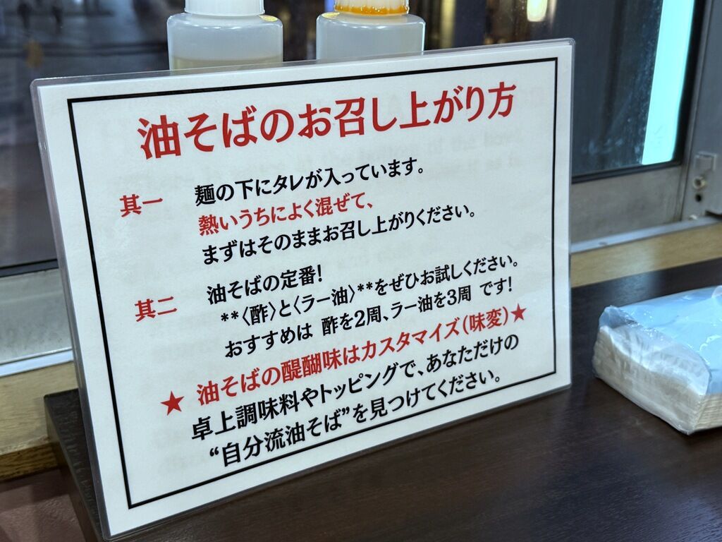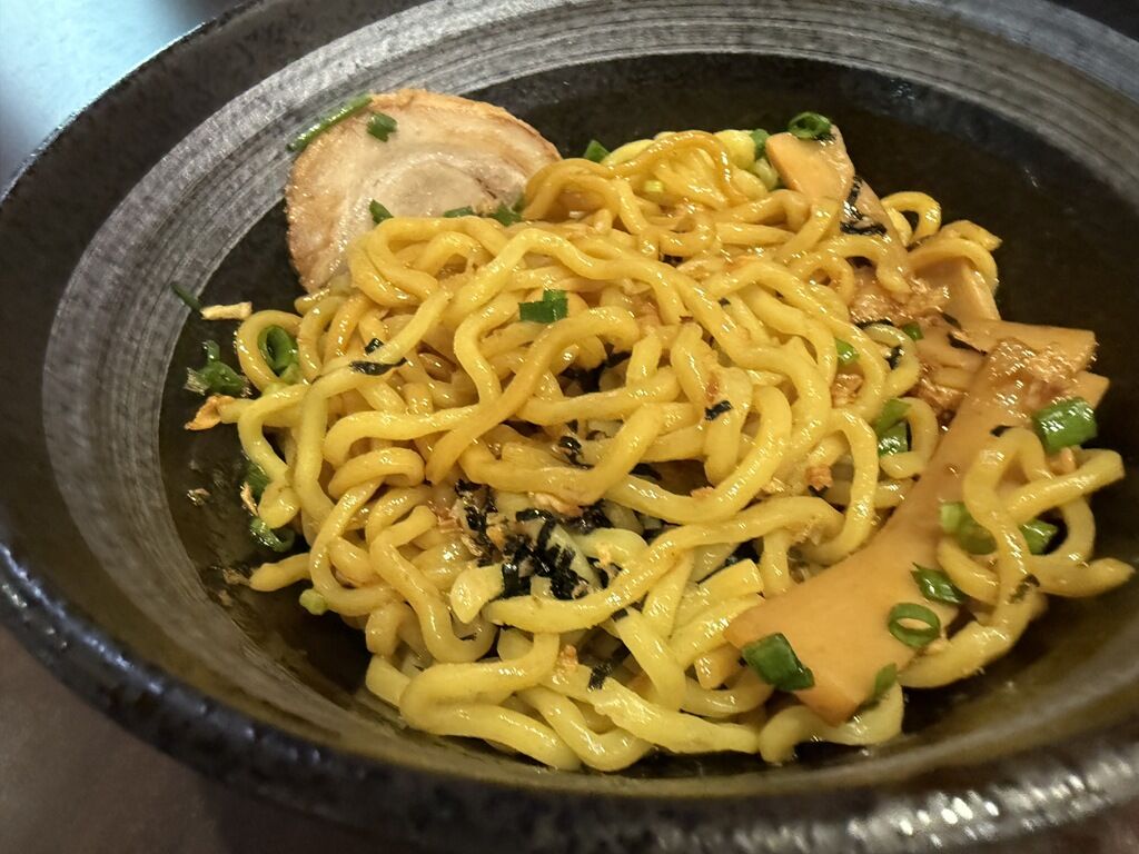 味は、昔ながらのしんふるでブレーンでベーシックな、古典的でトラディショナルな懐かしい感じのする油そば。フライドオニオンが食感のいいアクセントに。タレをしっかり全部混ぜてもしょっぱくなり過ぎず、ちょうど良い塩味になるとこが良点。もちろん酢とラー油がバッチリ合います。