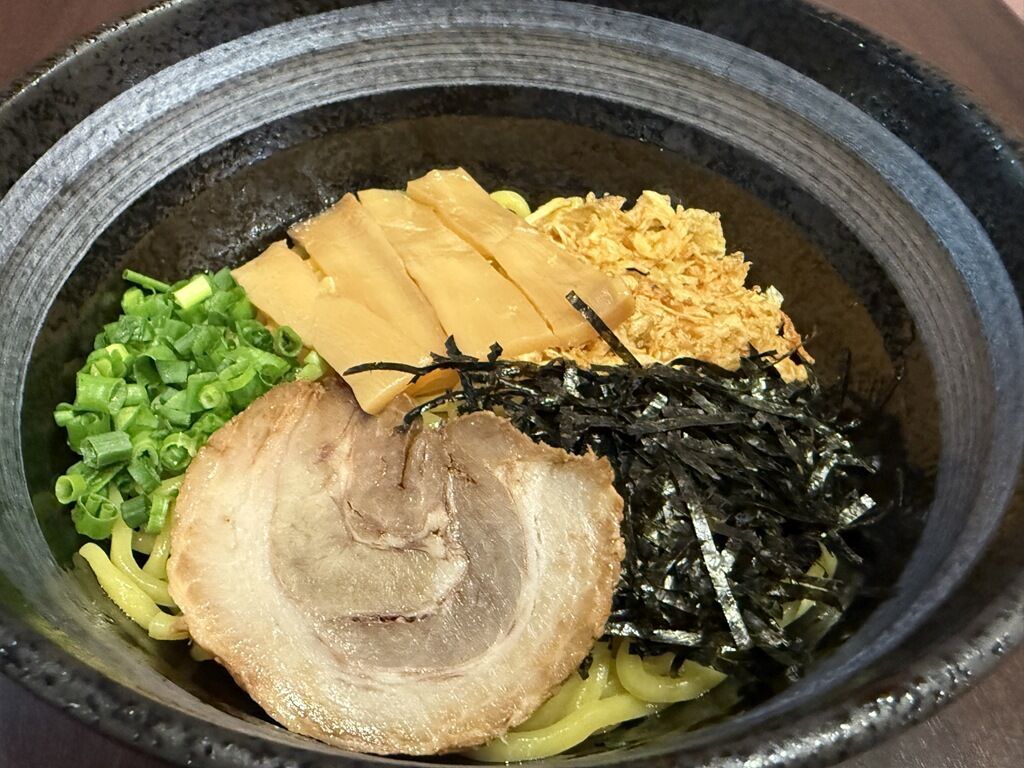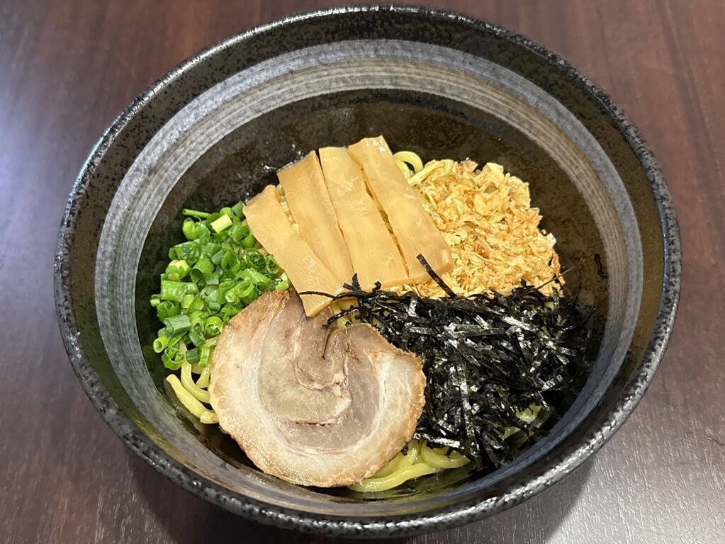具はチャーシュー、めんま、きざみ海苔、フライドオニオン、きざみ青ねぎ。