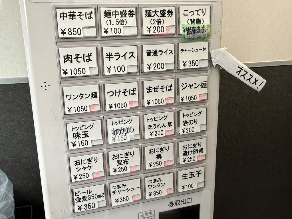 入店するとまず券売機で食券購入です。主なメニューは、中華そば850円