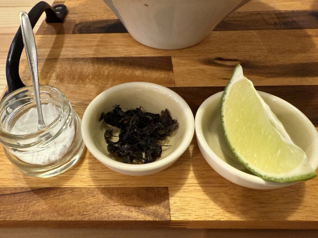 自家製の麺はストレート細麺。そのままで、藻塩x酢橘x岩海苔x昆布水xつけ汁の組み合わせで、食べ方のバリエーションは無数。特に酢橘を絞って昆布水とつけ汁につけていただくのが、最高に美味しい!まさに感動的な味わいでした!