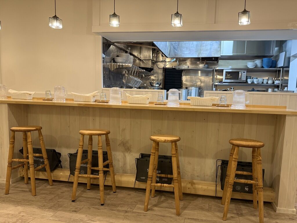 カウンターは1席ごとにラーメンを真上から照らす照明が付いていて、映えるラーメンフォトが撮影可能。