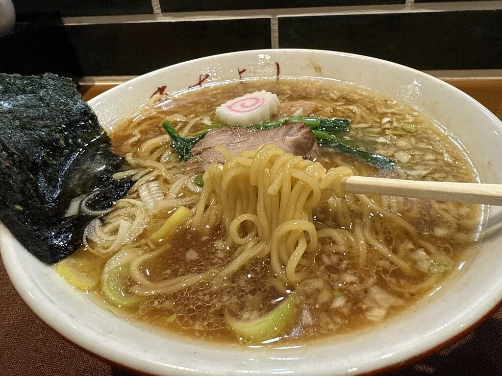 浅草来集軒製の麺は中細縮れタイプ。麺はさらにレトロ感があって、ほんといい感じですね~!