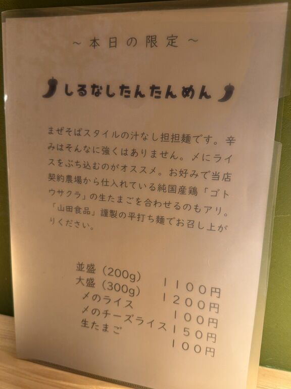 (本日の限定)しるなしたんたんめん1000円