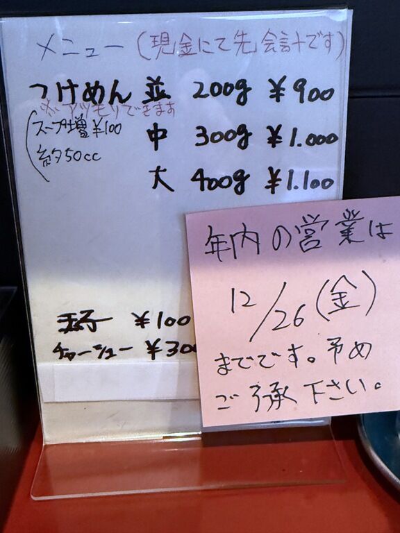 おいしく完食!2025年の営業は12月26日までだそうです。名店出身店主さんのオリジナリティ溢れるつけ麺、いかがでしょう。ごちそうさまでした!