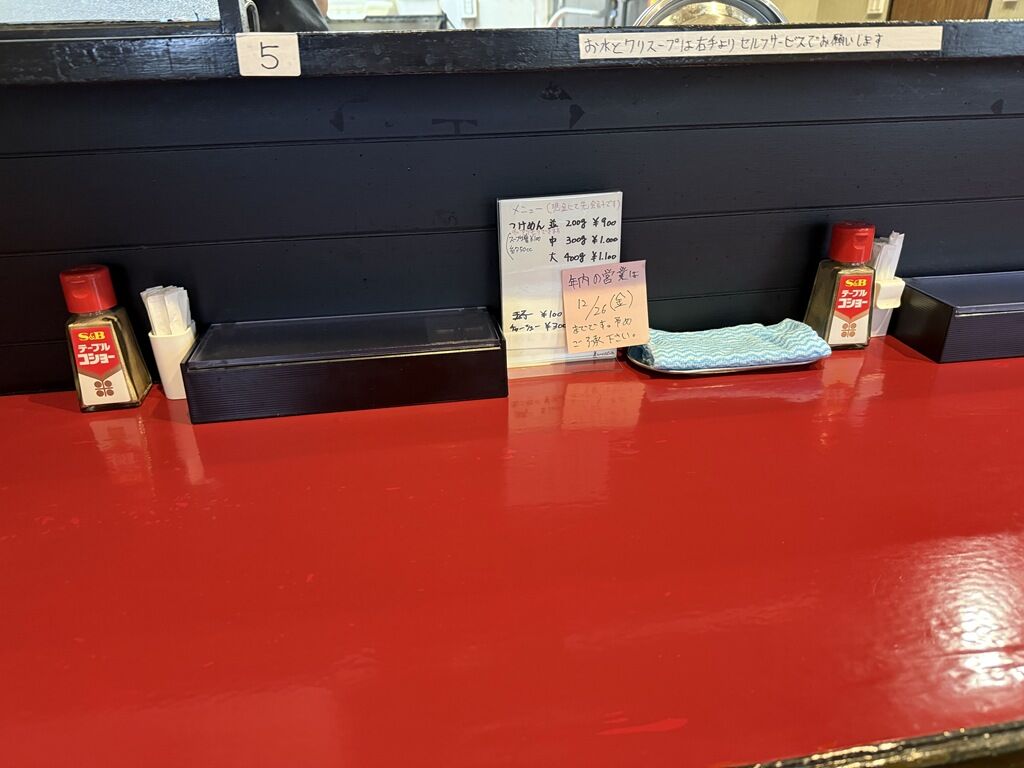 〆のスープ割りは給水コーナからセルフで。掲示が「クリスープ」と読めて、一瞬「栗スープ」?ってなりますが「ワリスープ」ですね。その割りスープは鰹出汁風の出汁で、魚介がさらに強まり、さらにホッとする味わいにシフトします。
