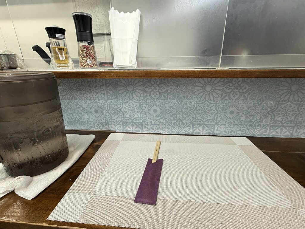 店内は厨房前に真っ直ぐなカウンター4席、壁に向かったカウンター2席。ですが手の痛みのためメニューと席数を絞って、席はカウンター4席のみでの営業。